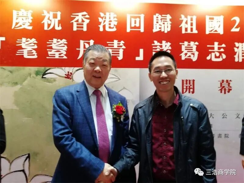 三浩商学院创始人谢白清(右)与原香港文汇报社长、全国政协委员张国良(左)合影