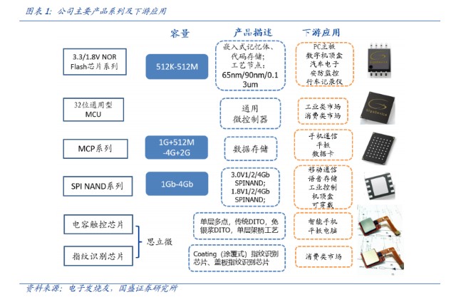 但是兆易创新通过避开海外巨头占据的市场优势,瞄准小容量市场空缺,结合自身在NOR Flash串行闪存领域的优势技术,整合外购的NAND产品。由于在2013年首次推出了SPI NAND系列产品,目前在NAND领域也有相关积累,NAND产品容量可以做到从1Gb至8Gb,电压涵盖3.3V和1.8V。