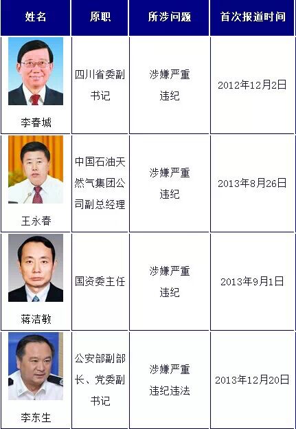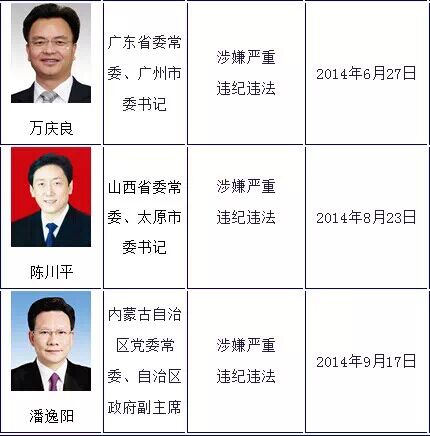 (来源:中国共产党新闻网;以查处时间为序,最后更新日期为2014年9月18日)