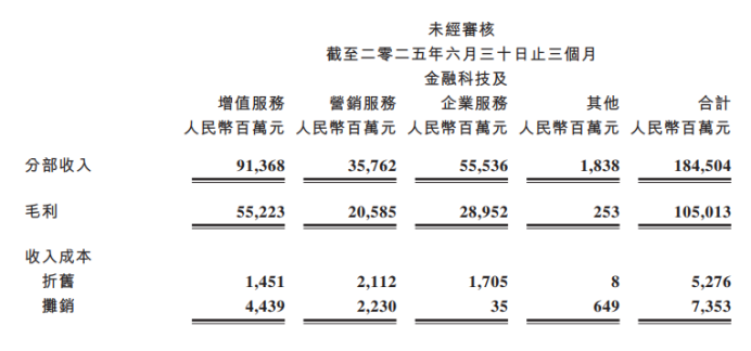 腾讯最新财报显示,2025年第二季度公司总收入为1845亿元人民币,同比增长15%;经营盈利692亿元,同比增幅18%;此外,毛利率达57%,同比增长4%。